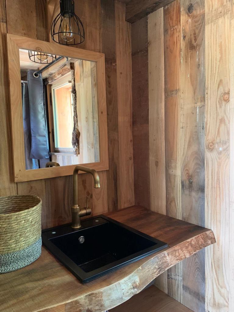 Cabane en bois sur pilotis, ce gîte est situé à 200m de la maison du propriétaire, avec une terrasse suspendue dans les arbres et une vue imprenable sur la vallée. Le logement est équipé d’une kitchenette, d’un poêle à bois, salle d’eau et toilettes sèches. Vous pourrez bénéficier d’un accès libre à la piscine, profiter des transats, et réserver vos massages.